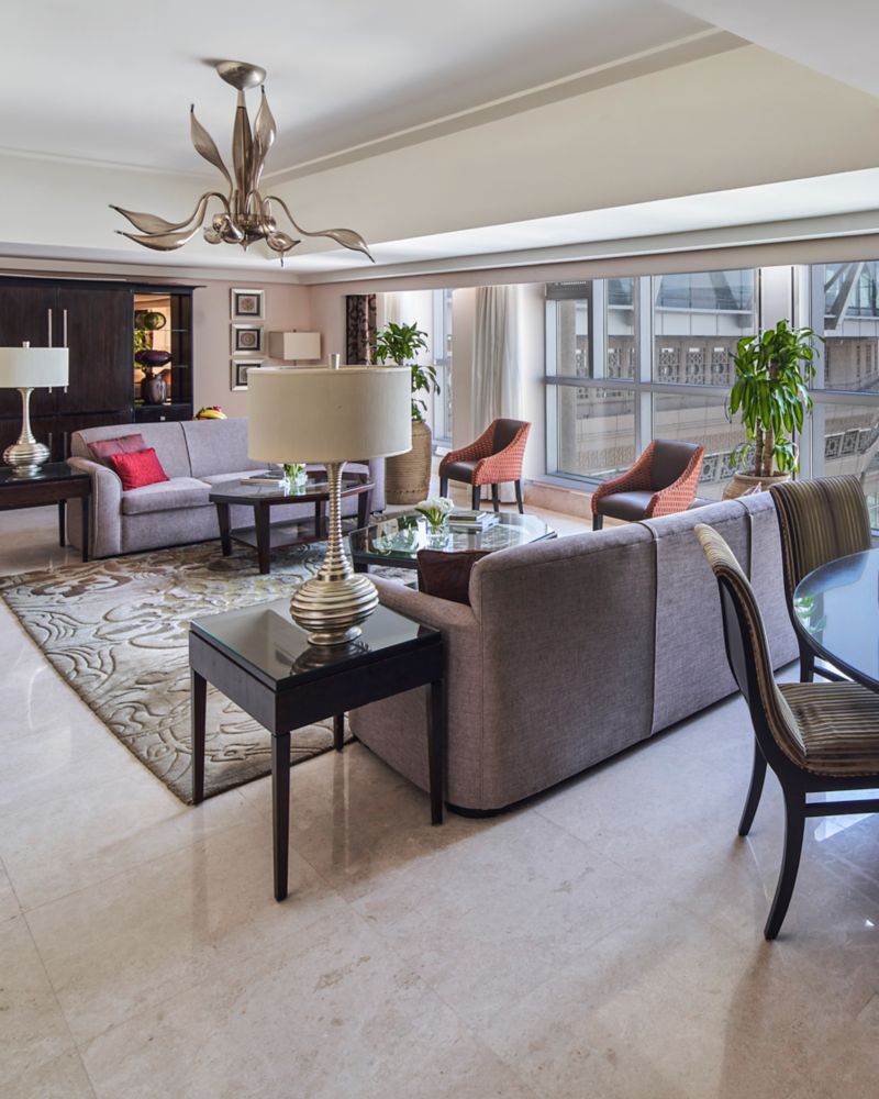 费尔蒙金尊双卧室套房 172平方米,配有特大号床,1个完整浴室,1个客用卫生间,独立客厅,两个沙发床,套房内迷你吧,套房内音箱播放哈拉姆音频,非吸烟房。豪华宽敞,完美结合舒适与工作。套房的设计融合了现代与传统元素,带来宁静的居住环境。每日提供24小时客房服务,确保每个细节都达到最高标准。宾客可以享用酒店的健身和水疗设施,享受全方位的放松体验。高速无线网络连接确保您随时保持在线,无论是工作还是娱乐。套房还提供迷人的卡巴景观,让您在享受奢华的同时,体验到难以忘怀的入住感受。无论是商务出行还是家庭度假,这里都是