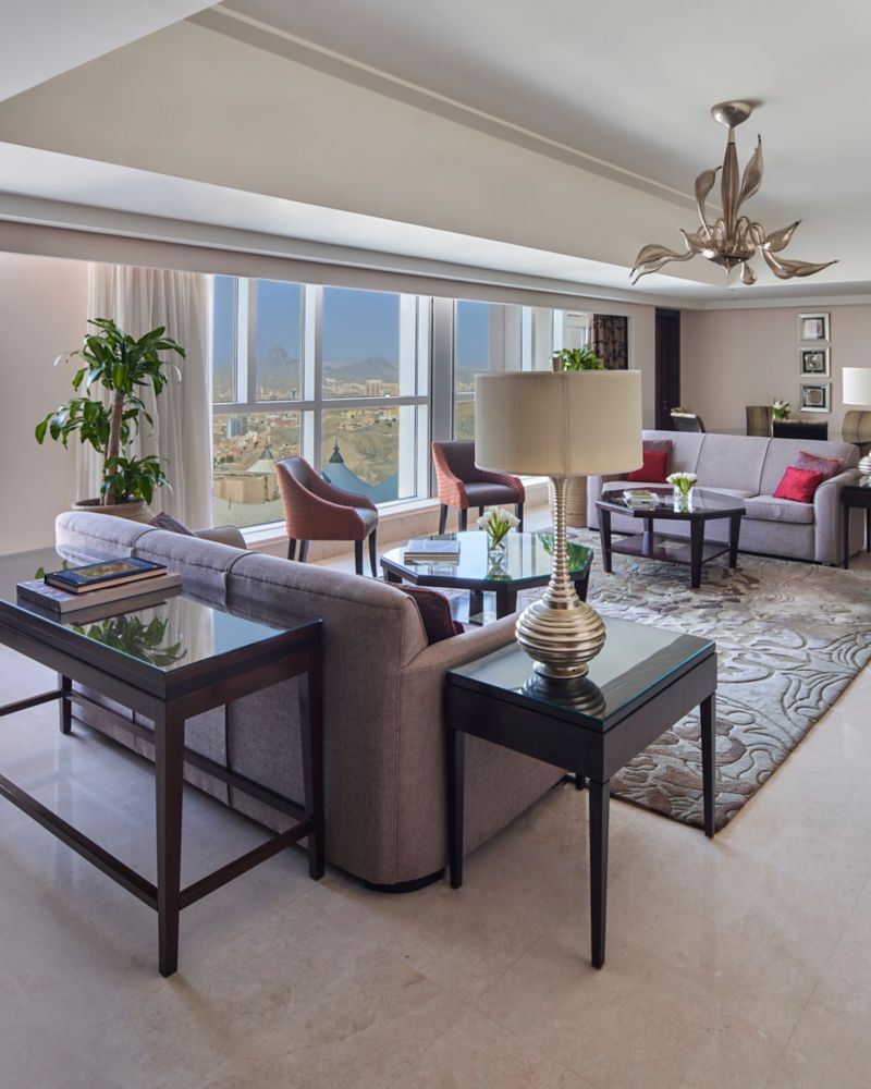 172m², Room with king size bed , 1 Full Bath, 1 Guest toilet, Separated living room , Two Sofa Bed, In Suite Mini-bar, In Suite Speakers For Haram Audio , Non Smoking.