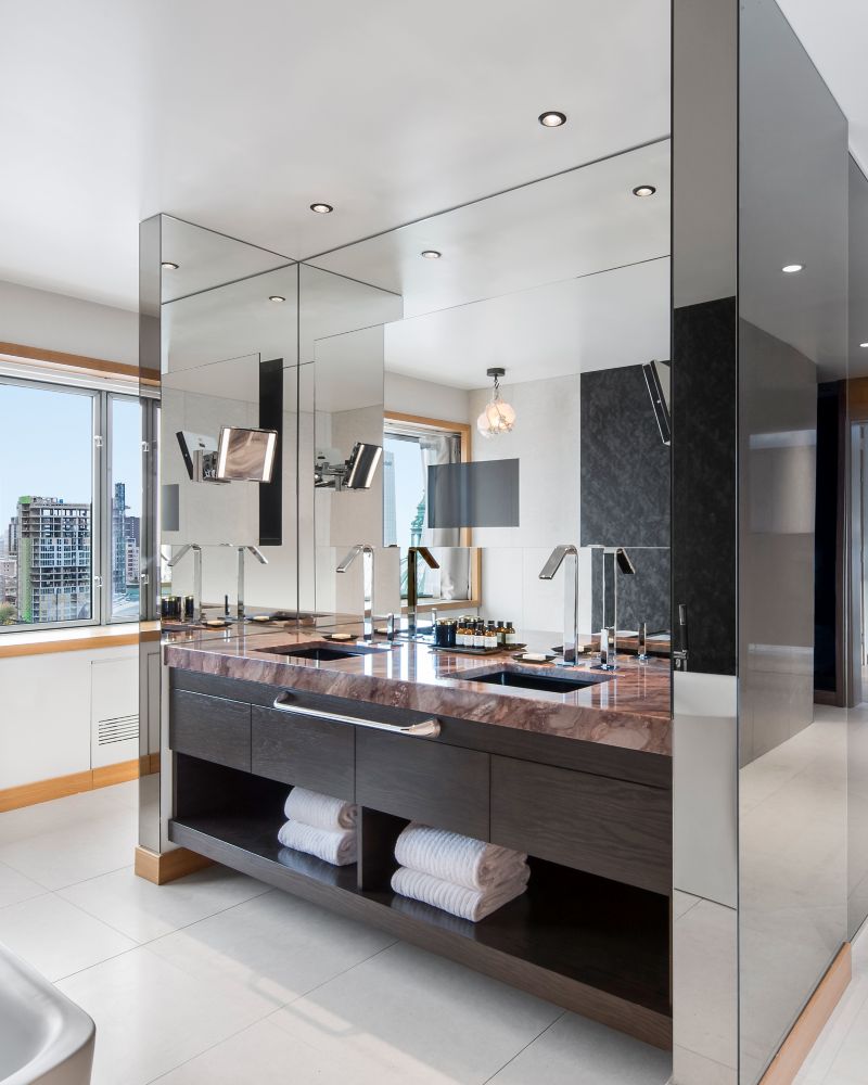 转角套房,设有带化妆间的起居区、带降雨式淋浴和独立式浴缸的水疗浴室,位于 20 楼,可应要求提供连通房