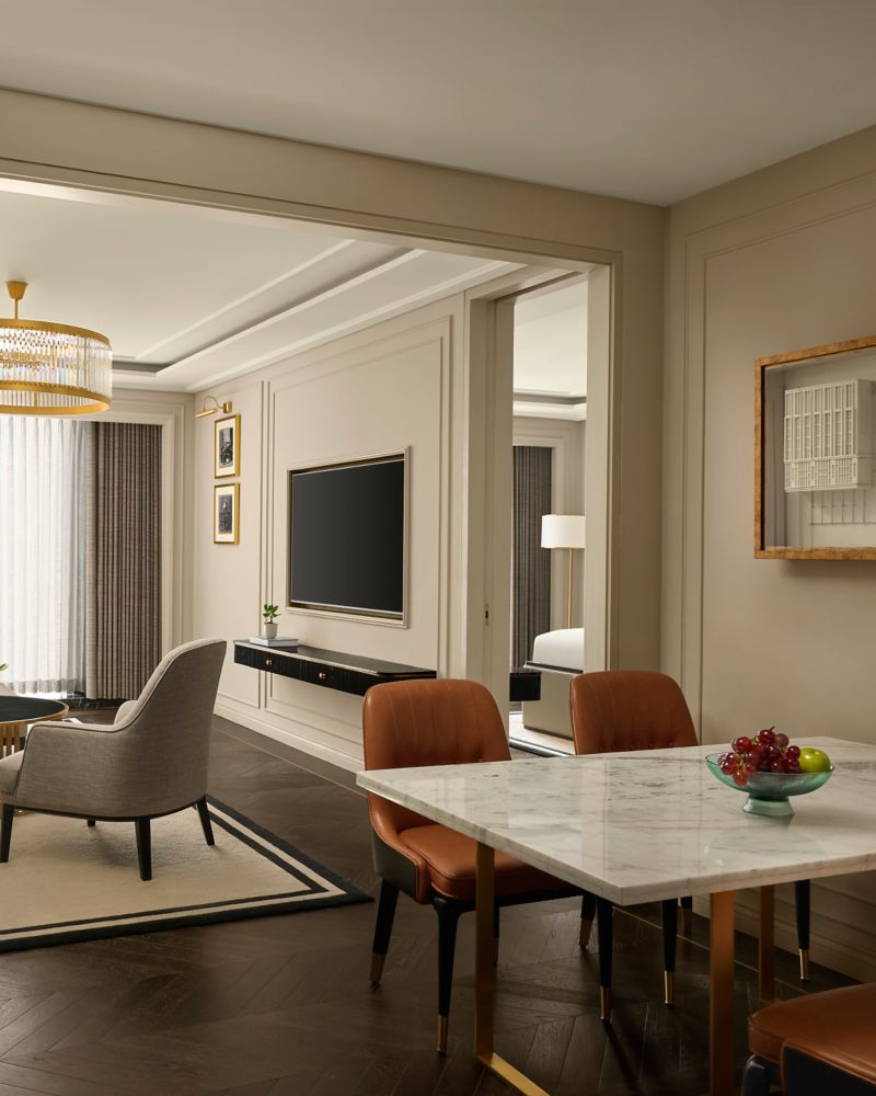 A luxurious suite where sophistication meets style. Enjoy Gold Lounge access, Fairmont Butler Service, and complimentary transport while immersing yourself in a serene space with eclectic interiors.
