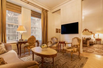 客房拥有较高的层高,可欣赏到第 5 大道的景观,设有独立起居室、化妆室和带独立淋浴的大浴室。提供管家服务。