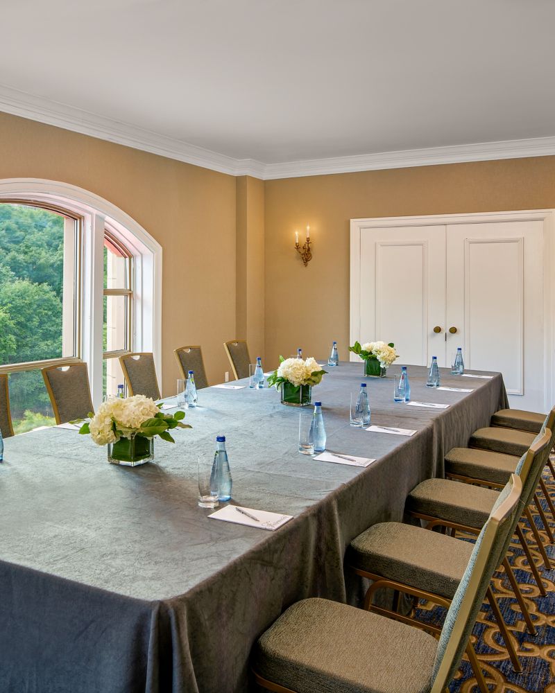 The Burgundy Room and the Palladian Room feature identical layouts and décor, serving as mirror images of each other.