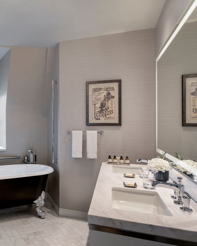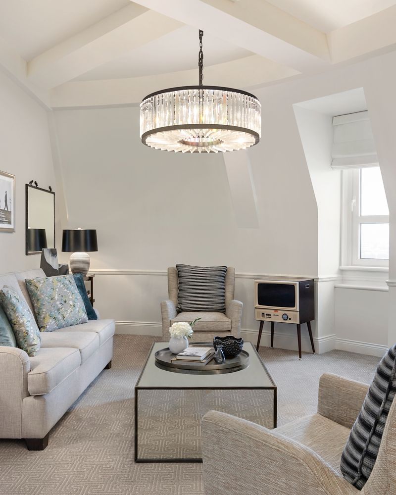 高级套房,采用以丘吉尔生平为主题的装饰风格,设有宽敞的起居室和餐厅、豪华的大理石浴室(带浴缸和淋浴)和化妆间。可欣赏河景。
