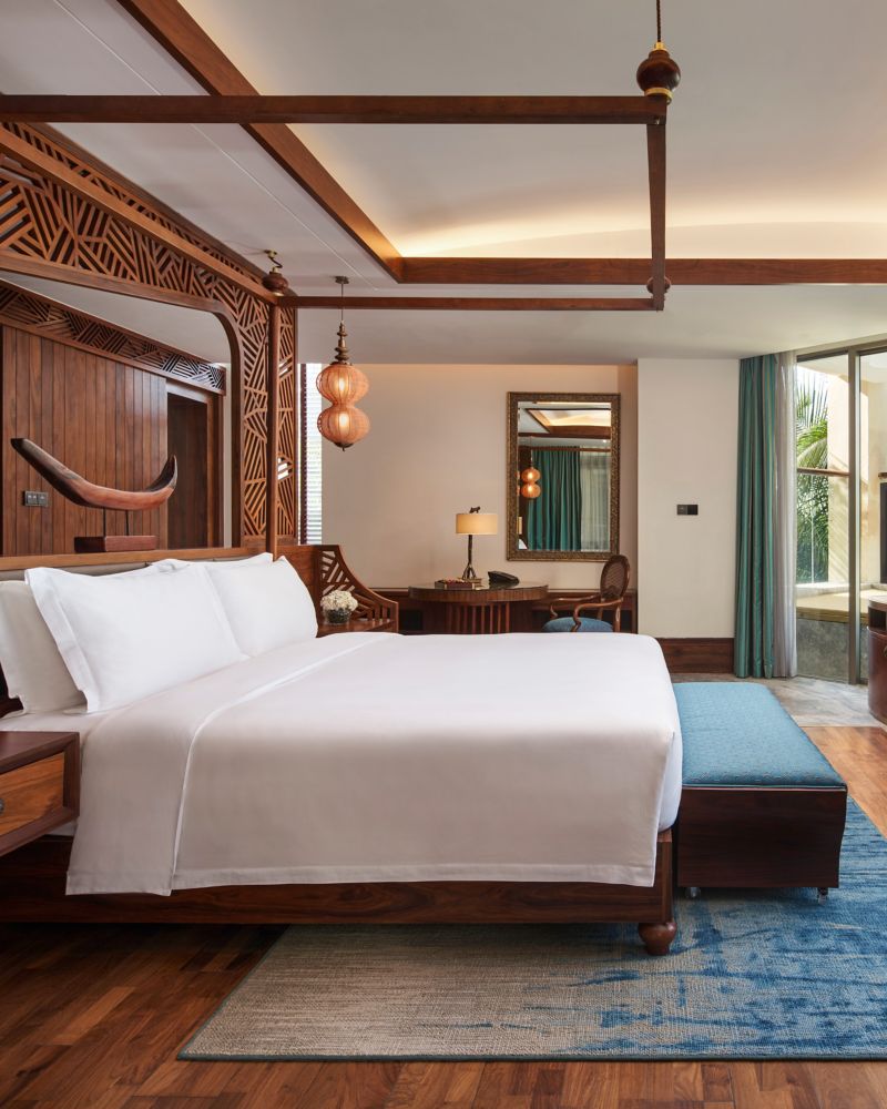 客房面积最小 65 平方米,配备采用古老和现代风格的硬木,以及度假村和当地珍稀的自然石材制成的家具。每间客房都采用开放式设计,宽敞的阳台可欣赏壮丽美景。所有客房都提供免费咖啡和茶包。
