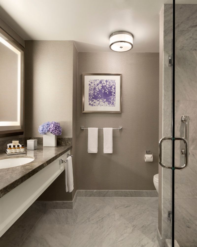 费尔蒙特大床客房 – 29 平方米(320 平方英尺) 可欣赏城市或庭院景观,配备带雨淋花洒的大理石浴室