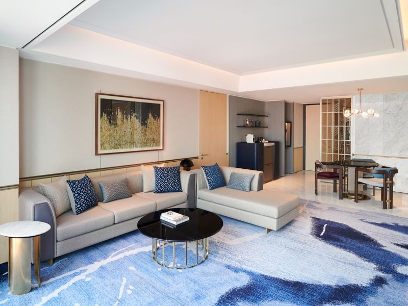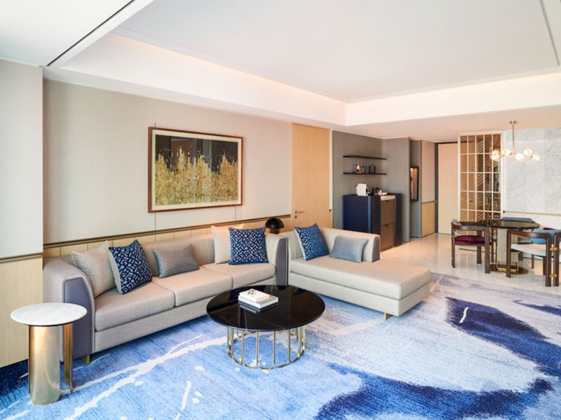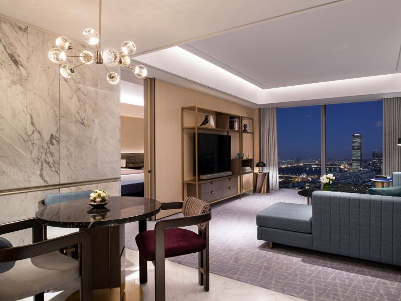 Premier suite comprising two bedrooms, two bathrooms, and a living room with a sofa and three-seat dining table. Access to Gold Lounge, serving daily breakfast, afternoon tea. ※ The room images may differ from the actual assigned view.
