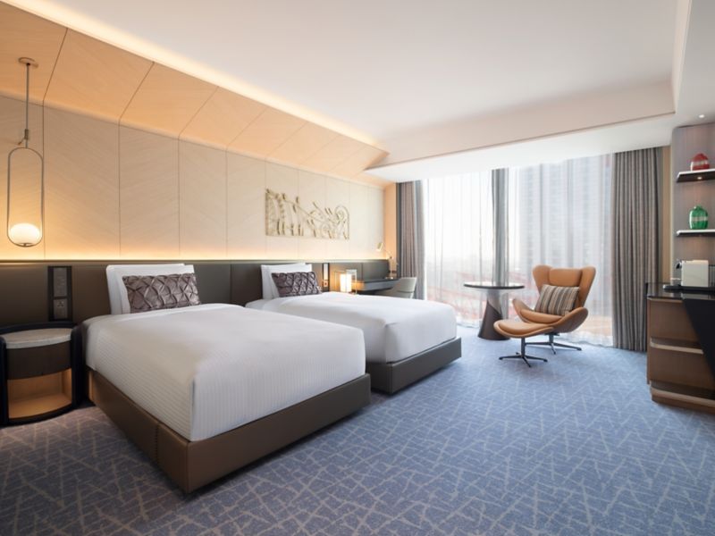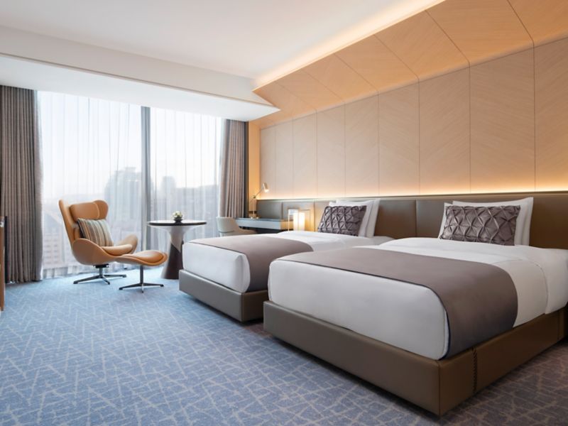 客房配备了 2 张单人床,可以组合成特大床使用,非常灵活,内部装饰采用现代风格,还配有精美的大理石浴室。※ 客房图片可能与实际分配的景象不同。