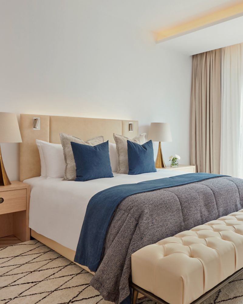 海景套房的每间卧室均配备一张特大床,设有两间陈设考究的浴室、宽敞的起居区和用餐区、大型私人阳台、免费无线网络,还包含多达四位成人可享的早餐。