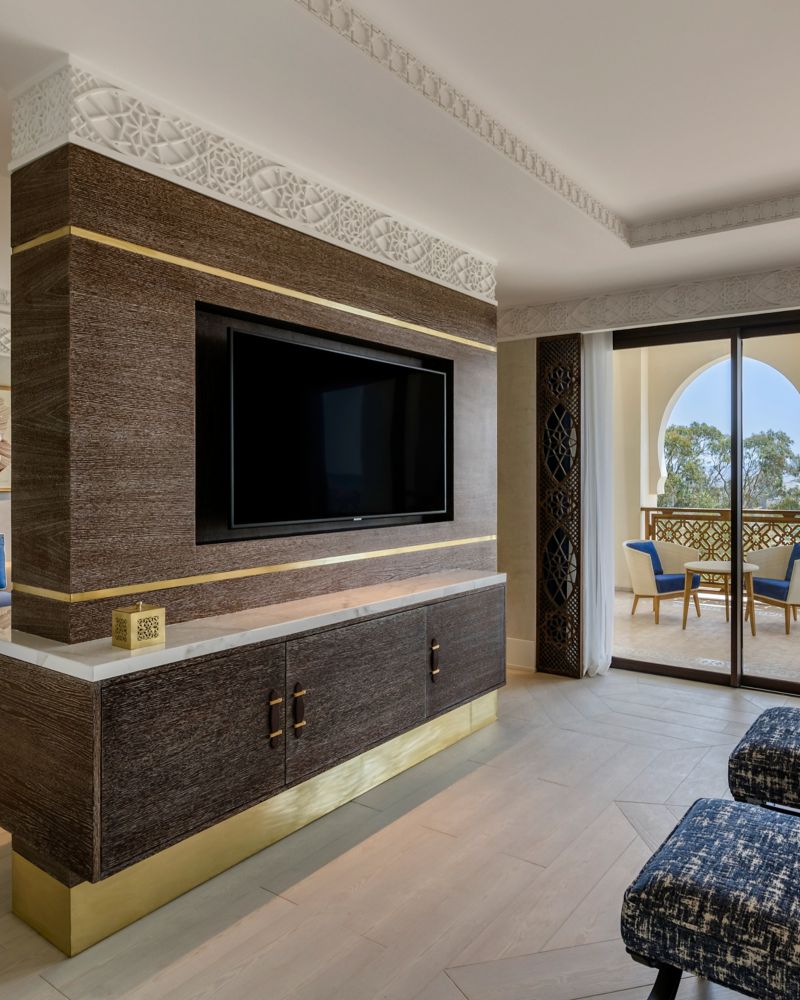 此客房设有面向城市的全景露台、带集成式休闲区的精致卧室和豪华的大理石浴室。客房采用不拘一格的设计,同时融合了传统摩洛哥装饰风格,色彩上让人感受到了地中海的浪漫静谧之美。