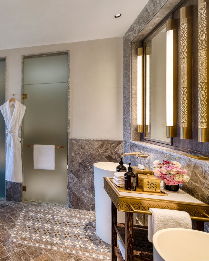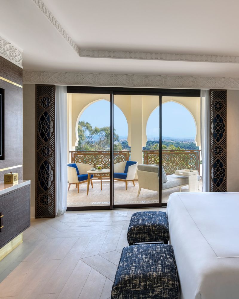 此客房设有面向森林的清新露台、带集成式休闲区的精致卧室和豪华的大理石浴室。客房采用不拘一格的设计,同时融合了传统摩洛哥装饰风格,色彩上让人感受到了地中海的浪漫静谧之美。