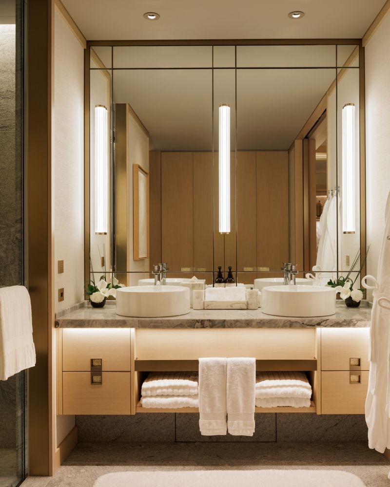 客房内配有 Le Labo Santal33 卫浴产品、Marshall 蓝牙音响、55 英寸智能电视和 Dyson Supersonic Nural™ Shine 吹风机等一系列优质设施,丰富您的入住体验。