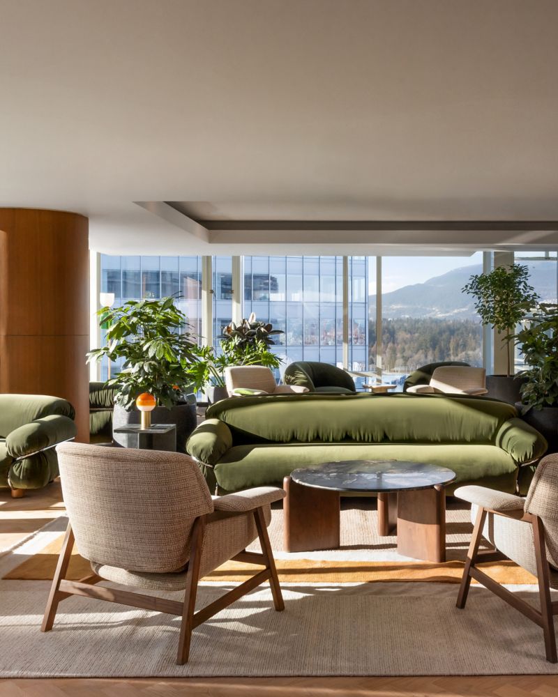 Newly renovated with stunning Coal Harbour and North Shore Mountain views. Residential touches include a pendant Bocci light suspended over a B and B Italia sofa, 75in TVs, Japanese-style washlet and spa shower.